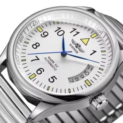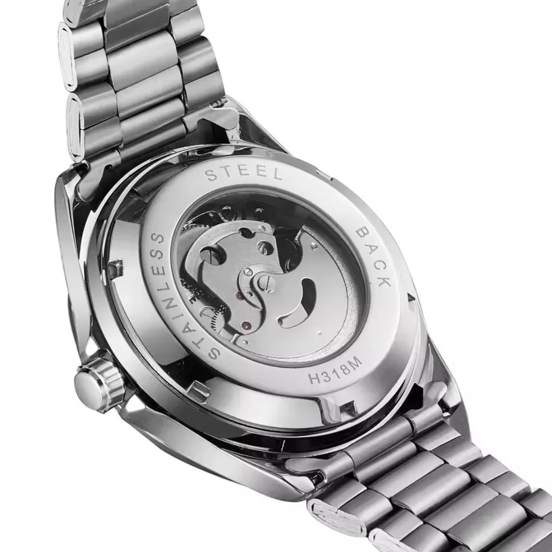 Minimalist automatic watch with elegant silver dial and stainless steel strap. No battery required – perfect for daily wear.