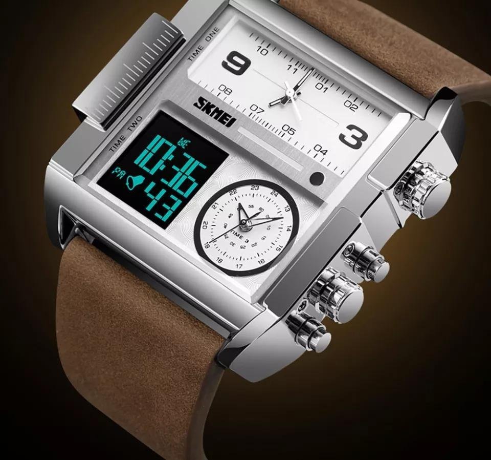 SKMEI Men’s Digital Sports Watch, LED Square Large Face Analog Quartz Watch with