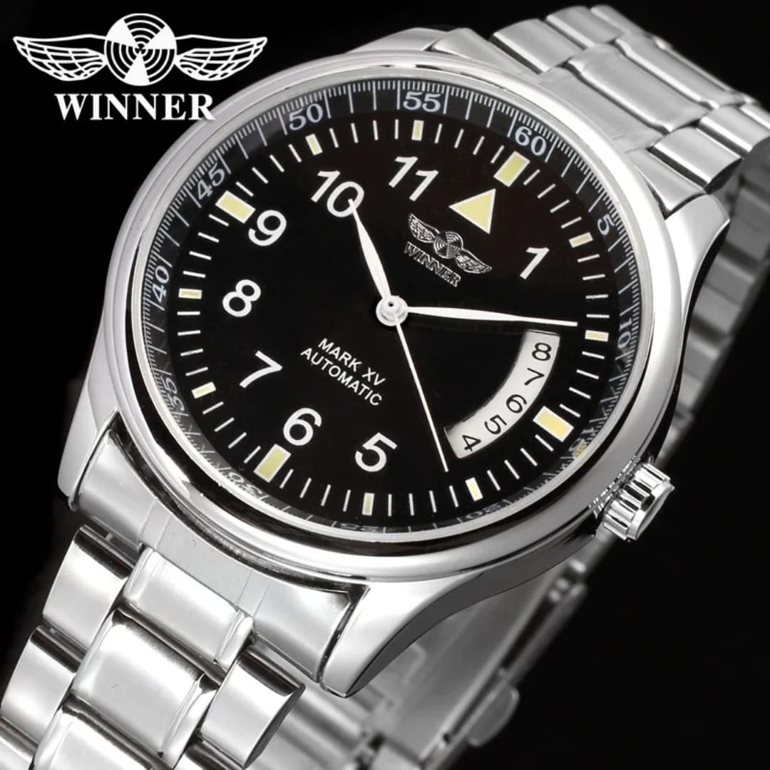 Winner Mark XV Automatic Watch – Classic Black Dial Stainless Steel-automatic watch under 100 AED (Copy)